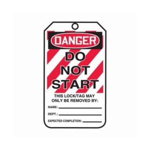 Accuform Lockout Tag, DANGER DO NOT START LOTO Legend, 534 in Height, 314 in Width, RPPlastic, 38 in Hole, Reinforced PullProof Metal Grommet
