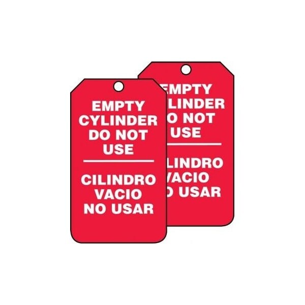 Bilingual Spanish Safety Tags, CYLINDER STATUS EMPTY CYLINDER DO NOT USE, 5.75in x 3.25in, RP-Plastic, 5PK