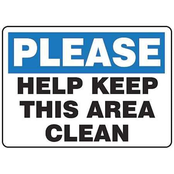 Housekeeping Sign, Sign Subject Matter Cleaning and Maintenance, Height 7 In., Width 10 In., Sign Material Vinyl, Sign Mounting Style Adhesive Surface, Header No Header, Legend Please Help Keep This Area Clean, Printed Language English, Sign Shape Rectangle