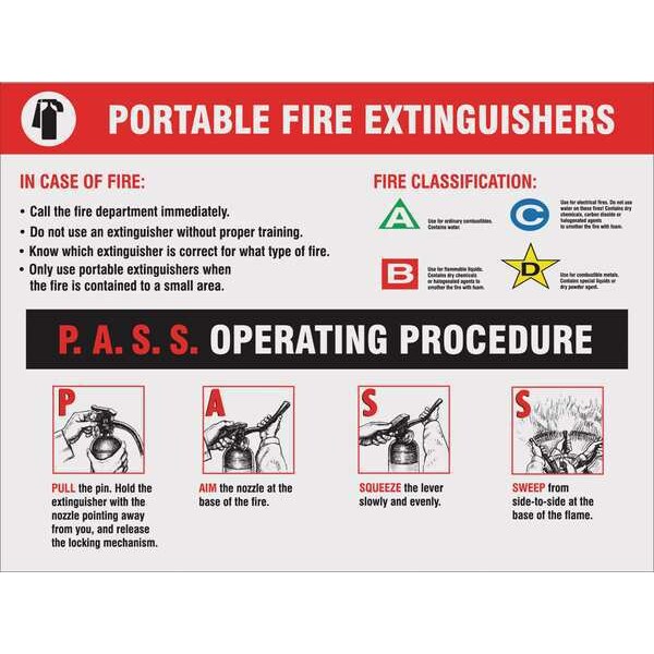 Poster, Portable Fire Extinguishers, P.A.S.S Operating Procedure, 17 in H x, 22 in W, Plastic