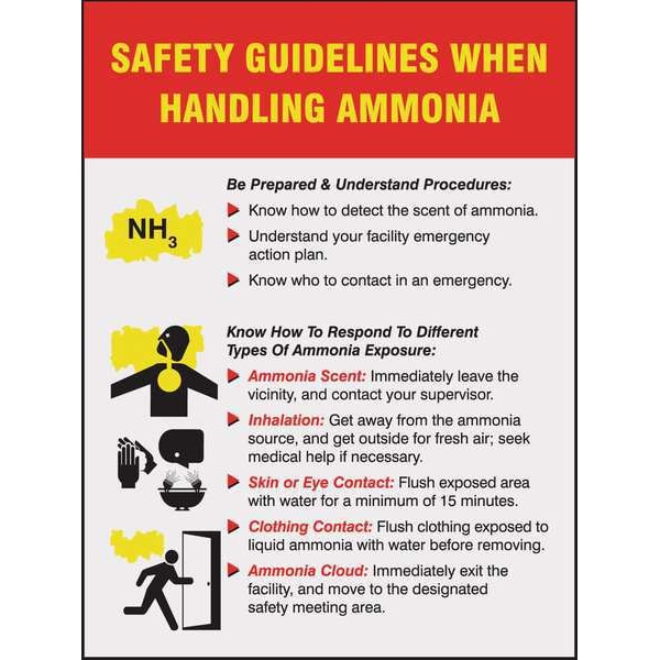Poster, Safety Guidelines When Handling Ammonia, 22 in H x, 17 in W, Plastic