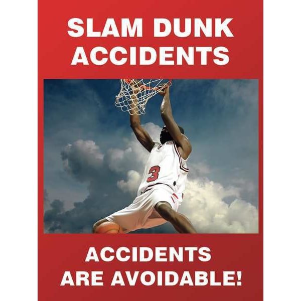 Poster, Slam Dunk Accidents, Accidents Are Avoidable!, 22 in H x, 17 in W, Plastic