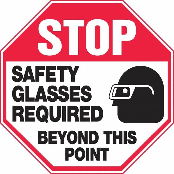 PPE (Personal Protection) Sign, Sign Subject Matter Personal Protection, Height 12 in, Width 12 in, Sign Material Vinyl, Sign Mounting Style Adhesive Surface, Header No Header, Legend Stop Safety Glasses Required Beyond This Point, Printed Language English, Sign Shape Octagon