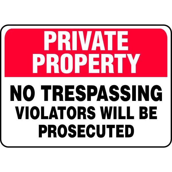 Private Property Sign, Sign Subject Matter Trespassing and Property, Height 7 in, Width 10 in, Sign Material Vinyl, Sign Mounting Style Adhesive Surface, Header No Header, Legend Private Property No Trespassing Violators Will Be Prosecuted, Printed Language English, Sign Shape Rectangle