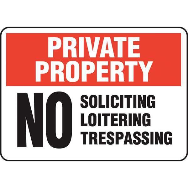 Private Property Sign, Sign Subject Matter Trespassing and Property, Height 10 in, Width 14 in, Sign Material Plastic, Sign Mounting Style With Mounting Holes, Header No Header, Legend Private Property No Soliciting Loitering Trespassing, Printed Language English, Sign Shape Rectangle
