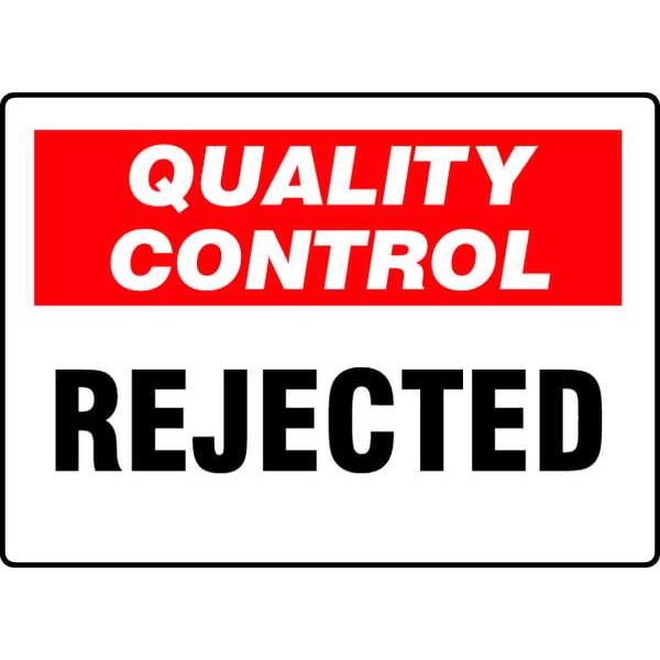 Quality Control Sign, Sign Subject Matter Facility, Height 7 In., Width 10 In., Sign Material Vinyl, Sign Mounting Style Adhesive Surface, Header No Header, Legend Quality Control Rejected, Printed Language English, Sign Shape Rectangle