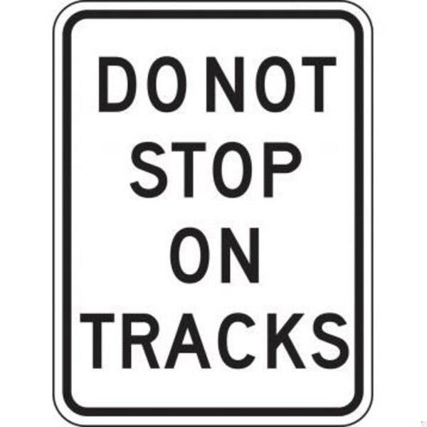 RAIL SIGN DO NOT STOP ON TRACKS 30 in x