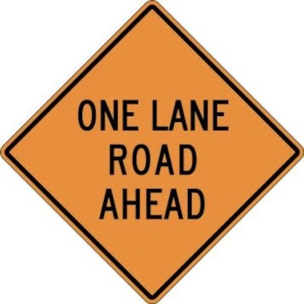 RIGID CONSTRUCT ION SIGN ONE LANE ROAD