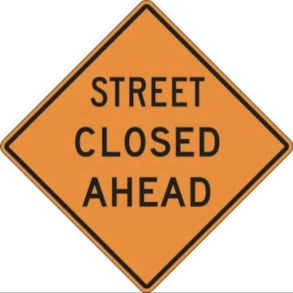 RIGID CONSTRUCT ION SIGN STREET CLOSED