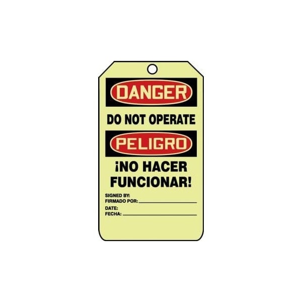 Accuform GLOW BILINGUAL OSHA DANGER SAFETY TAG SBTAW118