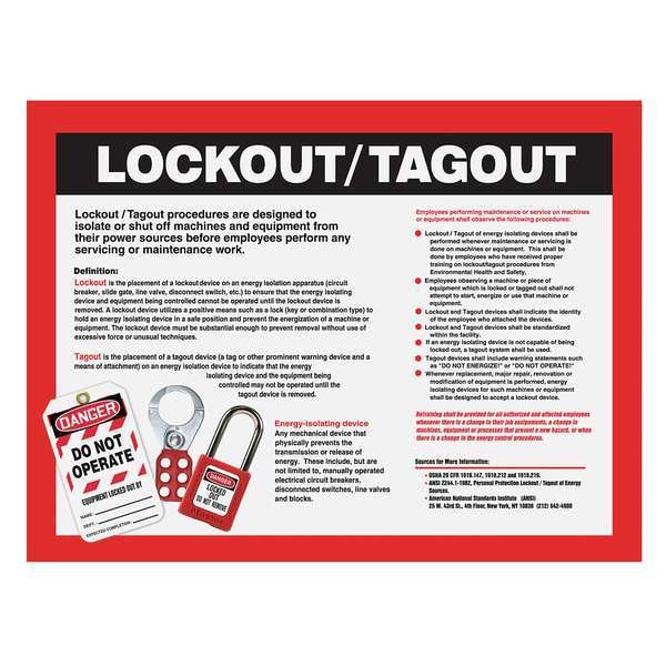 Safety Poster, Lockout Tagout, 17 in H x, 22 in W, Plastic