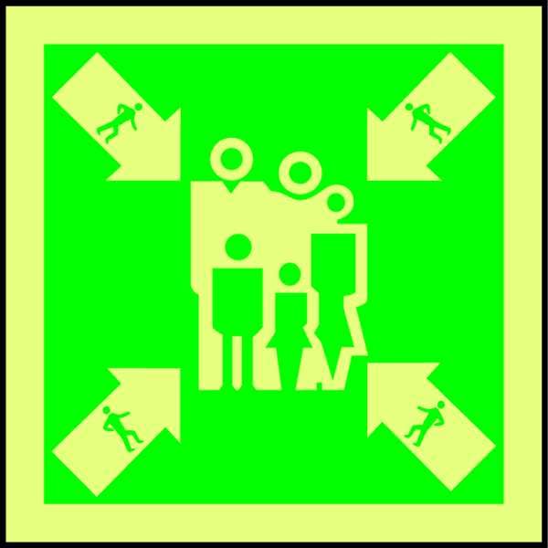 IMO (International Maritime Organization) Safety Sign, Sign Subject Matter Evacuation, Assembly or Shelter, Height 6 in, Width 6 in, Sign Material Plastic, Sign Mounting Style Surface, Header No Header, Legend Pictogram Only, Printed Language No Text, Sign Shape Square