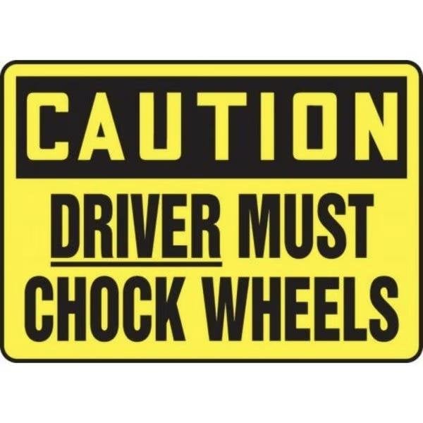 Safety Sign, CAUTION DRIVER MUST CHOCK WHEELS, 7 X 10, Vinyl