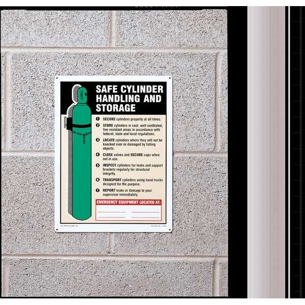 Safety Sign Label, Horizontal Rectangle, Number of Printed Sides 1, English, Sign Format Other Format, Sign Legend Safe Cylinder Handling and Storage, Sign Legend Background Color Beige, Black, White, Sign Legend Style Symbol and Text