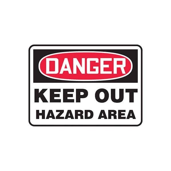 Accuform Safety Sign, Header DANGER, Language English, Text Legend, Legend KEEP OUT HAZARD AREA, 0055 in Plastic, 7 in Height, 10 in Width, Black on white SignWhite on BlackRed Header LegendBackground