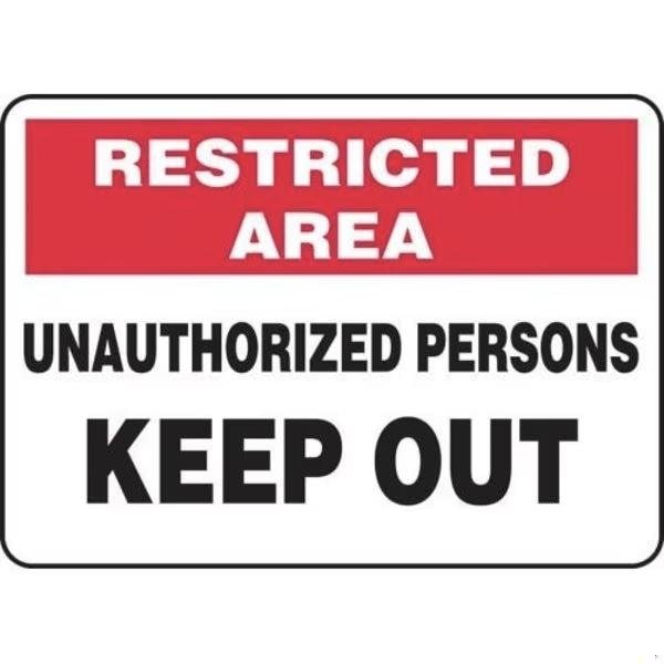 Accuform Safety Sign, Header RESTRICTED AREA, Text Legend, Legend UNAUTHORIZED PERSONS KEEP OUT, 6 mil Adhesive DuraVinyl, Acrylic Adhesive Mounting, 7 in Height, 10 in WidthSafety Signs identify and indicate potential, type and degree of hazards that may lead to accidental injury or property damage Duallayered Adhesive DuraVinyl delivers exceptional flexibility and performance, outperforming standard vinyl Printed image is protected by a highgloss UV protective coating Adhesive DuraVinyl is durable, even in the toughest indoor and outdoor conditions and adheres to most smooth, curved and irregular surfaces