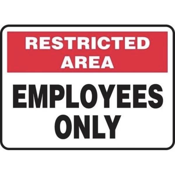 Accuform Safety Sign, Header RESTRICTED AREA, Text Legend, Legend EMPLOYEES ONLY, 4 mil Adhesive Vinyl, Acrylic Adhesive Mounting, 10 in Height, 14 in WidthSafety Signs identify and indicate potential, type and degree of hazards that may lead to accidental injury or property damage Adhesive Vinyl is the ideal choice for a variety of indoor and sheltered outdoor, marking needs Easily mounts to all curved areas such as pipes, poles and secondary containers Adhesive Vinyl signs feature a printed matte surface, moistureresistance and scored backing for quick peeloff and application