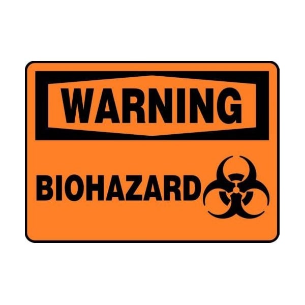 Accuform Safety Sign, WARNING Header, Language English, TextSymbol Legend, BIOHAZARD GRAPHIC Legend, 004 in Aluminum, 10 in Height, 14 in Width, Black on Orange