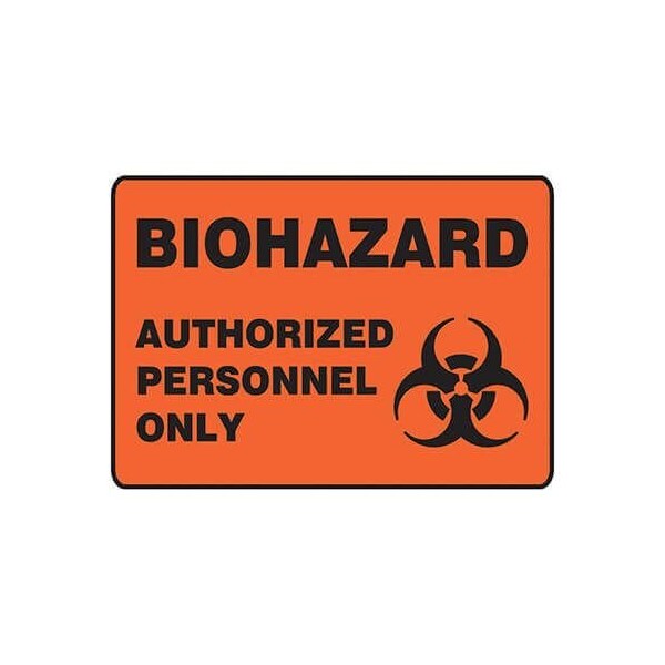 Accuform Safety Sign, NO HEADER, Language English, TextSymbol Legend, BIOHAZARD AUTHORIZED PERSONNEL ONLY GRAPHIC Legend, 004 in Aluminum, 7 in Height, 10 in Width, Black on Orange