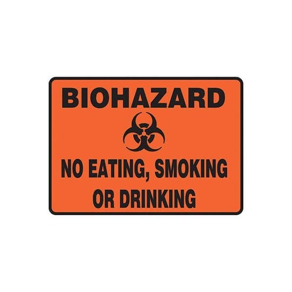 Accuform Safety Sign, NO HEADER, Language English, TextSymbol Legend, BIOHAZARD NO EATING, SMOKING OR DRINKING GRAPHIC Legend, 4 mil Adhesive Vinyl, Surface Mount, 7 in Height, 10 in Width, Black on Orange