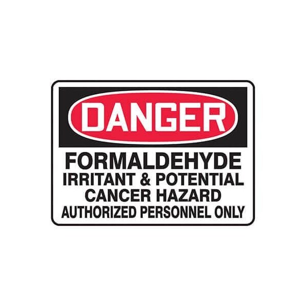 Accuform Safety Sign, Header DANGER, Language English, Text Legend, Legend FORMALDEHYDE IRRITANT POTENTIAL CANCER HAZARD AUTHORIZED PERSONNEL ONLY, 004 in Aluminum, 10 in Height, 14 in Width, Black on white SignWhite on BlackRed Header LegendBackground