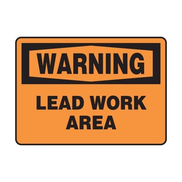 Accuform Safety Sign, Header WARNING, Language English, Text Legend, Legend LEAD WORK AREA, 004 in Aluminum, Hole Mounting, 7 in Height, 10 in Width, Black on Orange LegendBackground