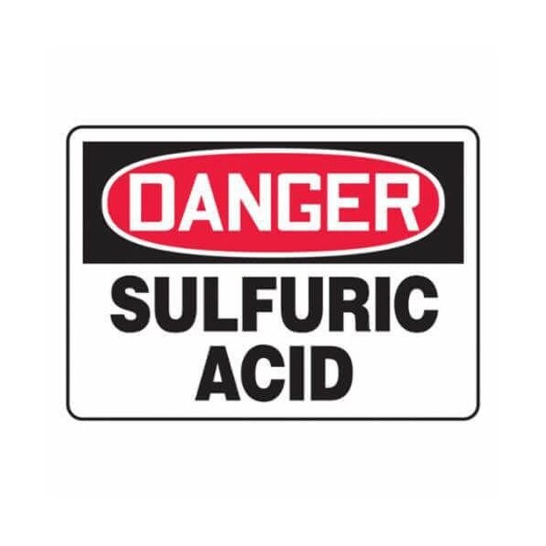Accuform Safety Sign, Header DANGER, Language English, Text Legend, Legend SULFURIC ACID, Plastic, Hole Mounting, 10 in Height, 14 in Width, Black on white SignWhite on BlackRed Header LegendBackground
