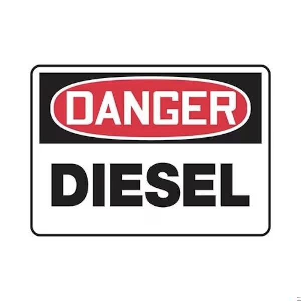 Accuform Safety Sign, Header DANGER, Language English, Text Legend, Legend DIESEL, 6 mil Adhesive DuraVinyl, 10 in Height, 14 in Width, Black on white SignWhite on BlackRed Header LegendBackground