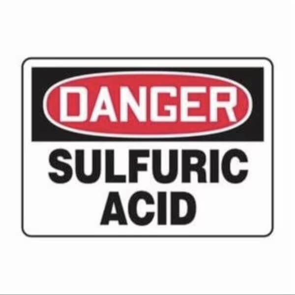 Accuform Safety Sign, Header DANGER, Language English, Text Legend, Legend SULFURIC ACID, Adhesive DuraVinyl, 7 in Height, 10 in Width, Black on white SignWhite on BlackRed Header LegendBackground