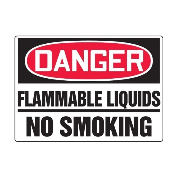Accuform Safety Sign, Header DANGER, Language English, Text Legend, Legend FLAMMABLE LIQUIDS NO SMOKING, 004 in Aluminum, 10 in Height, 14 in Width, Black on white SignWhite on BlackRed Header LegendBackground