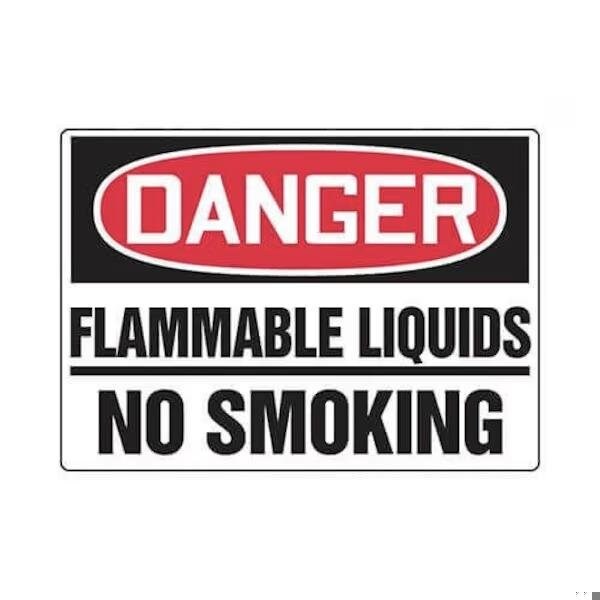 Accuform Safety Sign, Header DANGER, Language English, Text Legend, Legend FLAMMABLE LIQUIDS NO SMOKING, Adhesive DuraVinyl, 10 in Height, 14 in Width, Black on white SignWhite on BlackRed Header LegendBackground