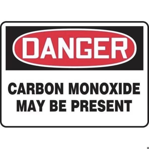 Accuform Safety Sign, Header DANGER, Language English, Text Legend, Legend CARBON MONOXIDE MAY BE PRESENT, Adhesive DuraVinyl, 10 in Height, 14 in Width, Black on white SignWhite on BlackRed Header LegendBackground