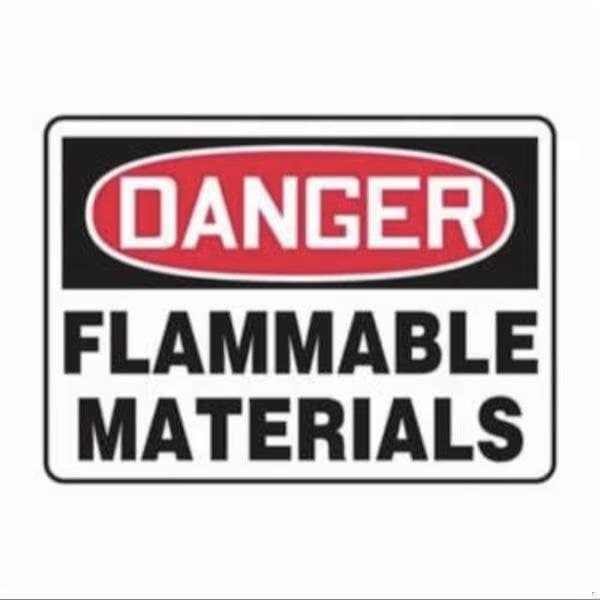 Accuform Safety Sign, Header DANGER, Language English, Text Legend, Legend FLAMMABLE MATERIALS, Adhesive DuraVinyl, 7 in Height, 10 in Width, Black on white SignWhite on BlackRed Header LegendBackground