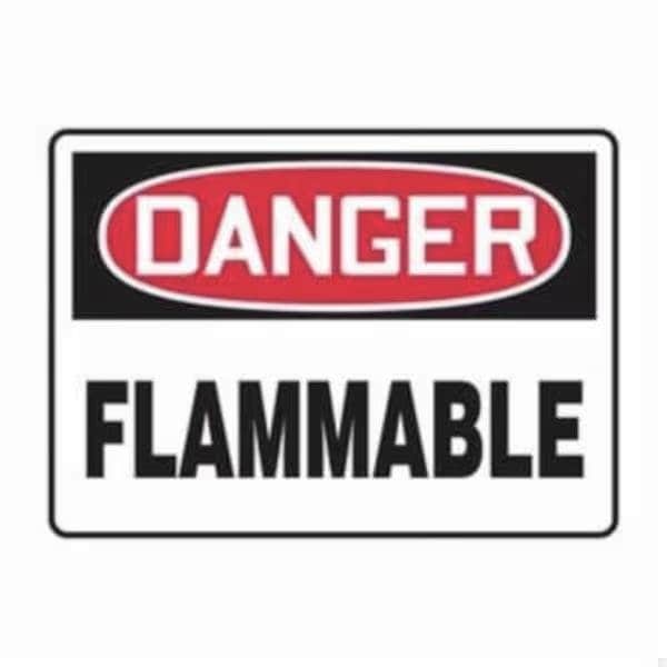 Accuform Safety Sign, Header DANGER, Language English, Text Legend, Legend FLAMMABLE, Adhesive DuraVinyl, 7 in Height, 10 in Width, Black on white SignWhite on BlackRed Header LegendBackground