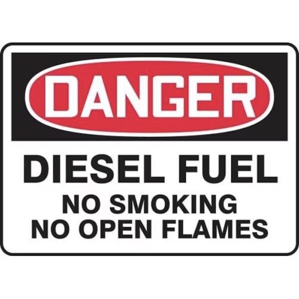 Accuform Safety Sign, Header DANGER, Language English, Legend DIESEL FUEL NO SMOKING NO OPEN FLAMES, Adhesive DuraVinyl, 7 in Height, 10 in Width, Black on white SignWhite on BlackRed Header LegendBackground