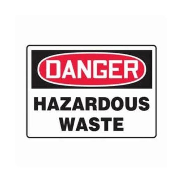 Accuform Safety Sign, Header DANGER, Language English, Text Legend, Legend HAZARDOUS WASTE, 004 in Aluminum, 10 in Height, 14 in Width, Black on white SignWhite on BlackRed Header LegendBackground