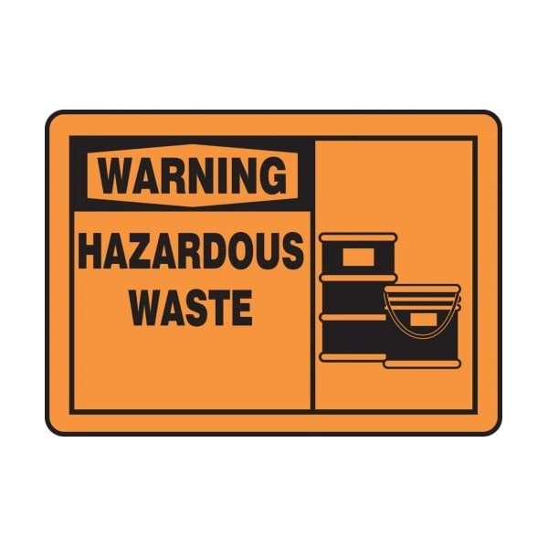 Accuform Safety Sign, WARNING Header, Language English, TextSymbol Legend, HAZARDOUS WASTE GRAPHIC Legend, 004 in Aluminum, 7 in Height, 10 in Width, Black on Orange
