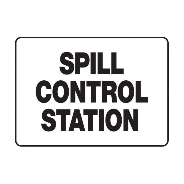 Accuform Safety Sign, Header NO HEADER, Language English, Text Legend, Legend SPILL CONTROL STATION, 004 in Aluminum, Hole Mounting, 7 in Height, 10 in Width, Black on white LegendBackground
