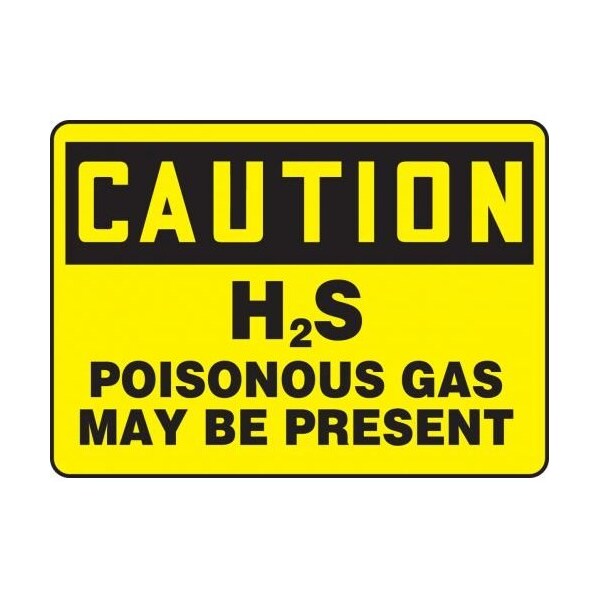 Accuform Safety Sign, Header CAUTION, Language English, Text Legend, Legend H2S POISONOUS GAS MAY BE PRESENT, 0055 in Plastic, 10 in Height, 14 in Width, Black on Yellow SignYellow on Black Header LegendBackground