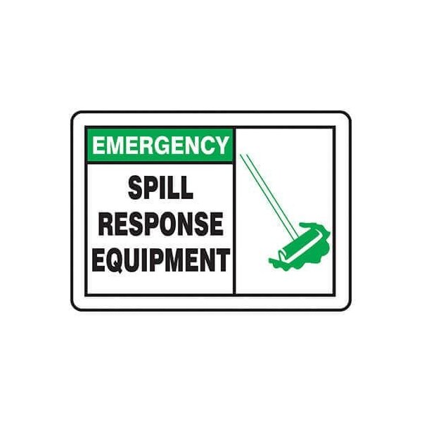 Accuform Safety Sign, NO HEADER, Language English, TextSymbol Legend, EMERGENCY SPILL RESPONSE EQUIPMENT GRAPHIC Legend, 004 in Aluminum, Hole Mount, 10 in Height, 14 in Width, Black on white SignWhite on Green Header