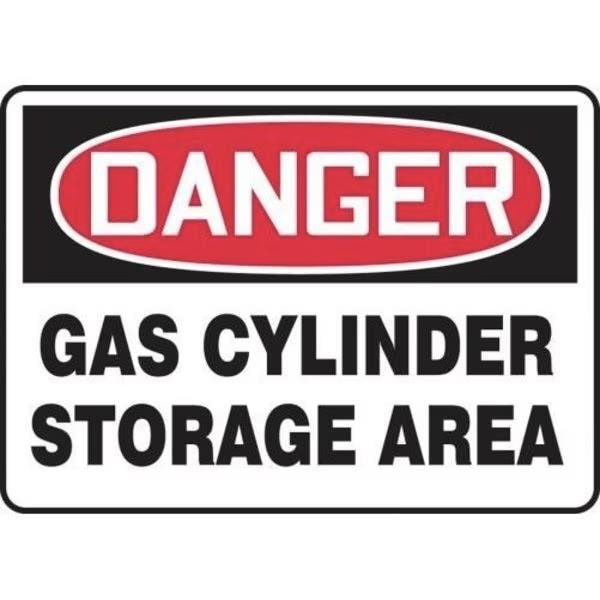 Accuform Safety Sign, Rectangle, Header DANGER, Language English, Text Legend, Legend GAS CYLINDER STORAGE AREA, 6 mil Adhesive DuraVinyl, 7 in Height, 10 in Width, Black on white SignWhite on BlackRed Header LegendBackground