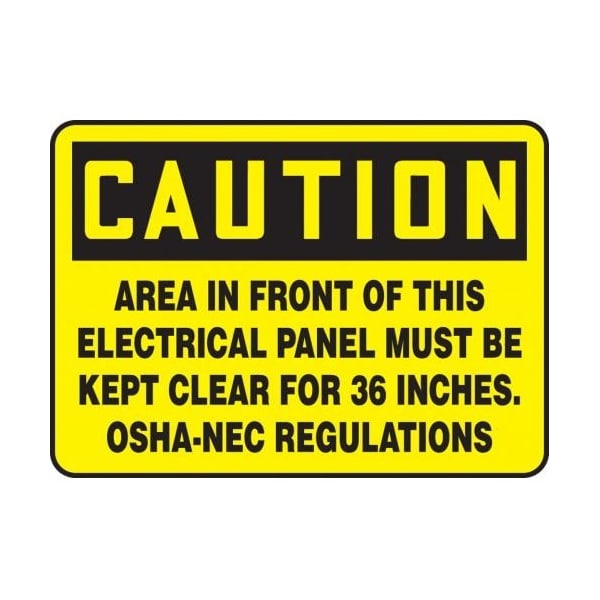 Accuform 7 H X 10 W, Vinyl Safety Sign CAUTION AREA in FRONT OF THIS ELECTRICAL PANEL MUST BE KEPT CLEAR FOR 36 INCHES identifies and indicates the potential, type, and degree of hazards that may lead to accidental injury or property damage They comply in accordance with OSHA 29 CFR 1910145 and ANSI Z535 requirements
