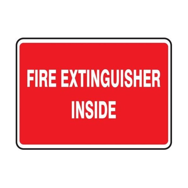 Accuform Safety Sign, Text Legend, Legend FIRE EXTINGUISHER INSIDE, 004 in Aluminum, 7 in Height, 10 in WidthSafety Signs identify and indicate potential, type and degree of hazards that may lead to accidental injury or property damage Aluminum signs withstand washdowns, harsh elements, abusive conditions and feature good chemical, abrasion and impact resistance Aluminum is excellent for indoor and outdoor usage, making it ideal for a wide variety of industrialstrength applications