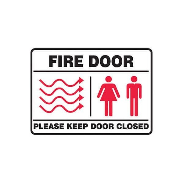 Accuform Safety Sign, NO HEADER , TextSymbol Legend, FIRE DOOR PLEASE KEEP DOOR CLOSED GRAPHIC Legend, 0055 in Plastic, Hole Mount, 7 in Height, 10 in Width, Black on WhiteSafety Signs identify and indicate potential, type and degree of hazards that may lead to accidental injury or property damage Plastic signs are semiflexible, made with 50 recycled content and ideal for indoor and shortterm, sheltered outdoor environments Plastic signs feature good impact resistance, UV inhibitors and enough flex to mount on slightly curved areas