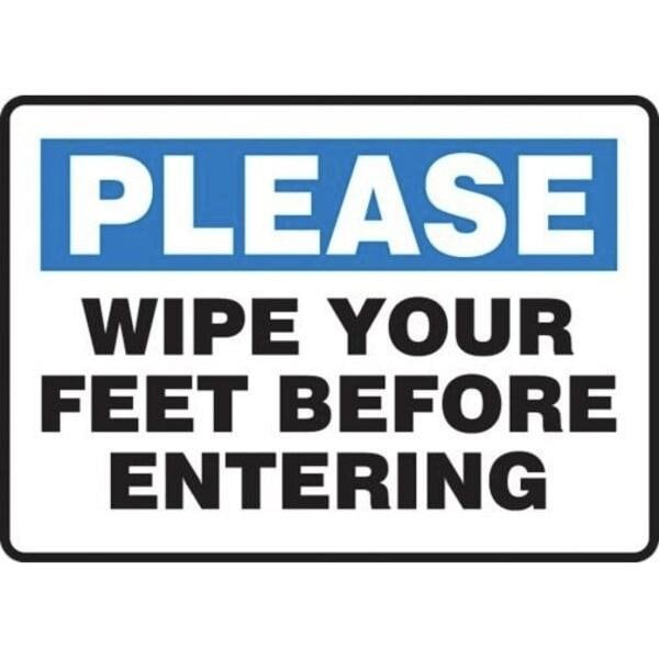 Accuform Safety Sign, Header PLEASE, Text Legend, Legend WIPE YOUR FEET BEFORE ENTERING, Adhesive DuraVinyl, 10 in Height, 14 in WidthSafety Signs identify and indicate potential, type and degree of hazards that may lead to accidental injury or property damage Duallayered Adhesive DuraVinyl delivers exceptional flexibility and performance, outperforming standard vinyl Printed image is protected by a highgloss UV protective coating Adhesive DuraVinyl is durable, even in the toughest indoor and outdoor conditions and adheres to most smooth, curved and irregular surfaces