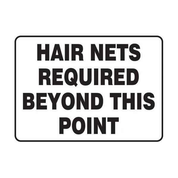 Accuform Safety Sign, Rectangle, Header NO HEADER, Language English, Text Legend, Legend HAIR NETS REQUIRED BEYOND THIS POINT, Aluminum, Surface Mounting, 10 in Height, 14 in Width, Black on white LegendBackgroundChoose your safety signs and safety labels from custom or stock No minimum quantities are required, no set up fees and most importantly no additional charge for colors or logos Once you find the safety sign or safety label that delivers the information or warning message you need, consider having your custom or stock order shipped within 24 hr