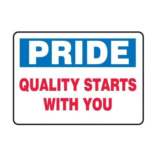 Accuform Safety Sign, Header NO HEADER, Language English, Text Legend, Legend PRIDE QUALITY STARTS WITH YOU, Aluminum, Surface Mounting, 10 in Height, 14 in Width, RedWhite on BlueWhite LegendBackgroundChoose your safety signs and safety labels from custom or stock No minimum quantities are required, no set up fees and most importantly no additional charge for colors or logos Once you find the safety sign or safety label that delivers the information or warning message you need, consider having your custom or stock order shipped within 24 hr
