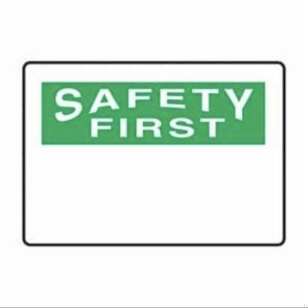 Accuform Safety Sign, Header SAFETY FIRST, Legend BLANK, 6 mil Adhesive DuraVinyl, 10 in Height, 14 in WidthSafety Signs identify and indicate potential, type, and degree of hazards that may lead to accidental injury or property damage Duallayered Adhesive DuraVinyl delivers exceptional flexibility and performance, outperforming standard vinyl Printed image is protected by a highgloss UV protective coating Adhesive DuraVinyl is durable, even in the toughest indoor and outdoor conditions, and adheres to most smooth, curved, and irregular surfaces