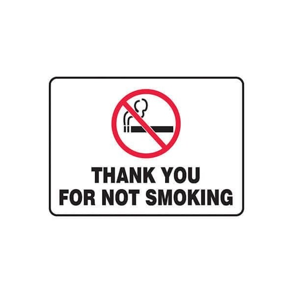 Accuform Safety Sign, NO HEADER , TextSymbol Legend, THANK YOU FOR NOT SMOKING GRAPHIC Legend, 0055 in Plastic, 7 in Height, 10 in Width, BlackWhiteSafety Signs identify and indicate potential, type and degree of hazards that may lead to accidental injury or property damage Plastic signs are semiflexible, made with 50 recycled content and ideal for indoor and shortterm, sheltered outdoor environments Plastic signs feature good impact resistance, UV inhibitors and enough flex to mount on slightly curved areas