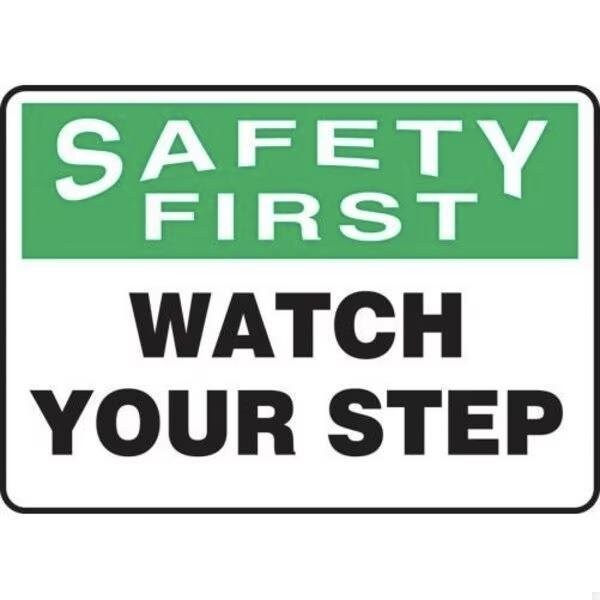 Accuform Safety Sign, Header SAFETY FIRST, Text Legend, Legend WATCH YOUR STEP, 6 mil Adhesive DuraVinyl, 7 in Height, 10 in WidthSafety Signs identify and indicate potential, type and degree of hazards that may lead to accidental injury or property damage Duallayered Adhesive DuraVinyl delivers exceptional flexibility and performance, outperforming standard vinyl Printed image is protected by a highgloss UV protective coating Adhesive DuraVinyl is durable, even in the toughest indoor and outdoor conditions and adheres to most smooth, curved and irregular surfaces